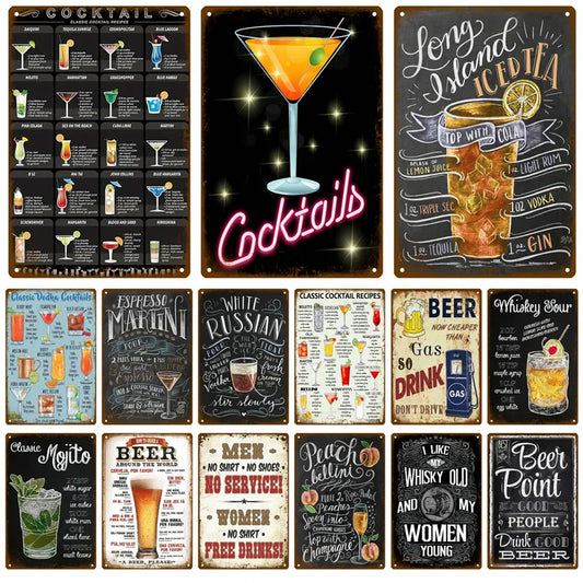 Cocktail Tin Sign Plaque Metal Sign Plate Vintage Posters Wall Art Decoration For Bar Pub Club Man Cave Iron Painting Home Decor