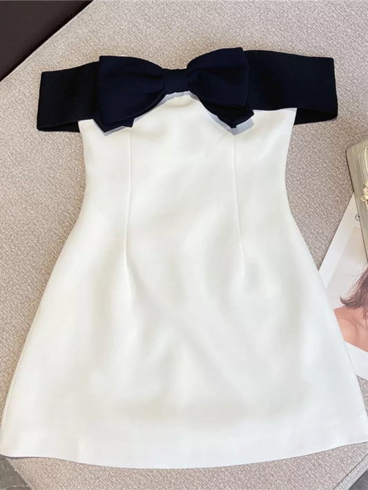 New Collection Sleeveless Black Bow Strapless High Waist dress
