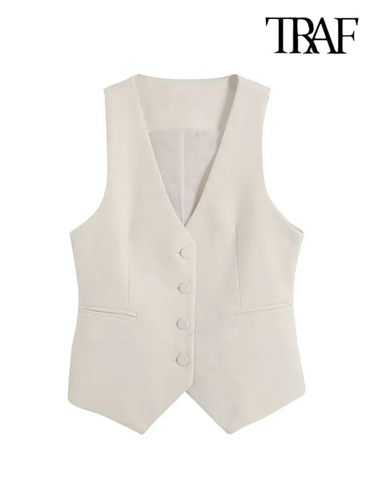 TRAF Women Fashion Front Button Fitted Waistcoat