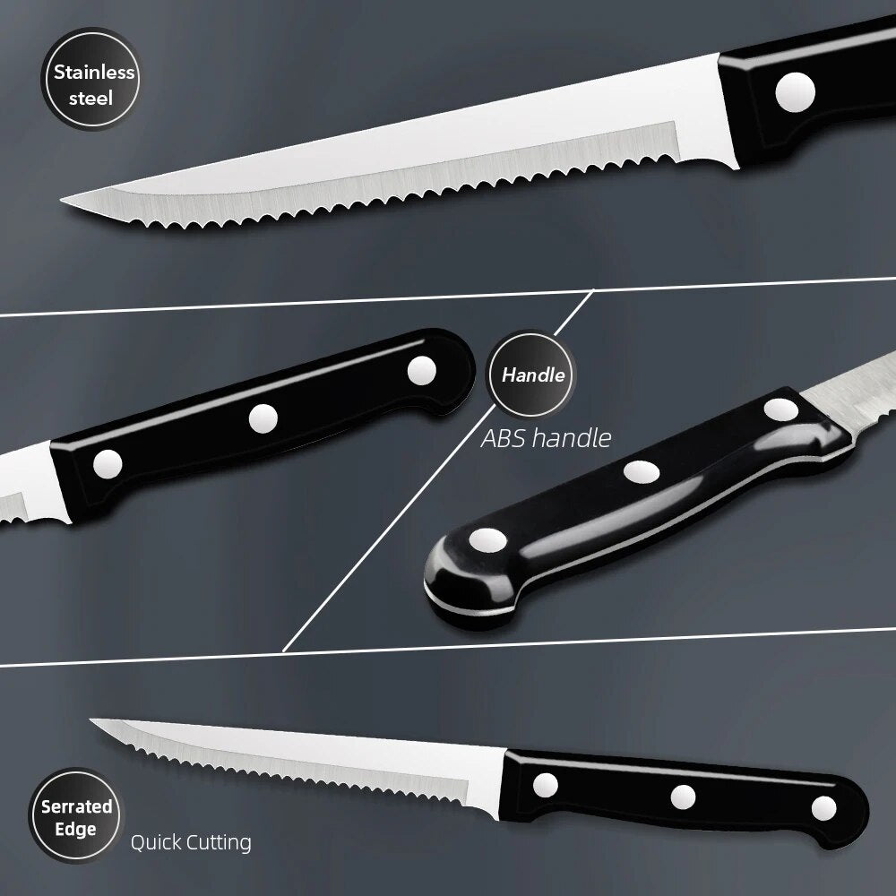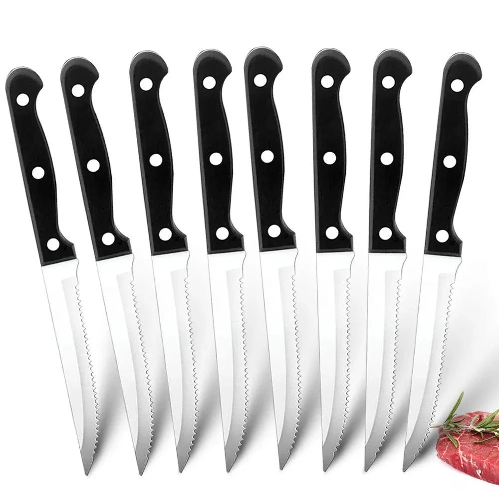 Steak Knives Set Cutlery Set 6/8 Pcs Full Tang Stainless Steel Sharp Serrated Dinner Knives Set Dishwasher Safe for Meat Bread