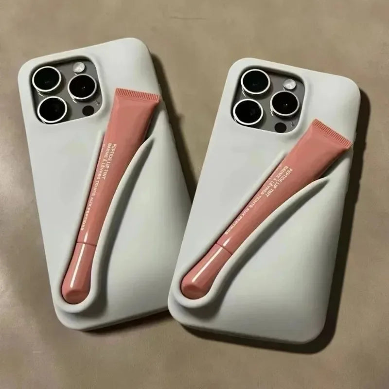 Luxury 3D Lipstick Lip Gloss Hole Holder Phone Case For Iphone 15Pro 15 14 Plus