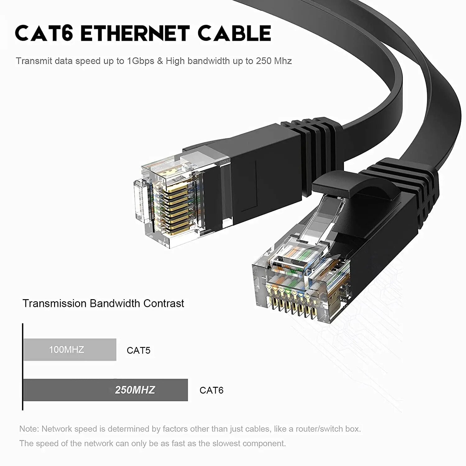 High performance Cat6 Ethernet cable, Cat6 flat Network Patch Snagless Cable provides universal connectivity for LAN network components, supports all devices with RJ45 Jacks, offers premium connectivity to computers/laptop and network components, such as for routers, Xbox 360, Xbox one, switch boxes, network printers, security camera, VoIP phones.