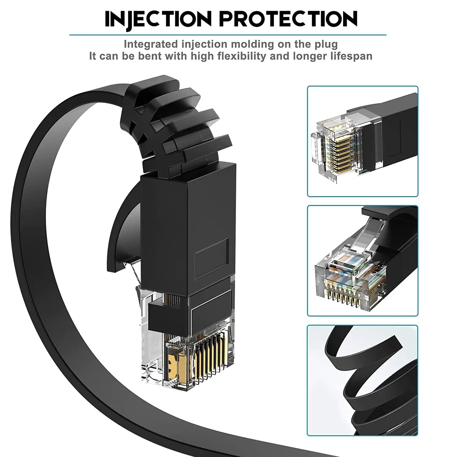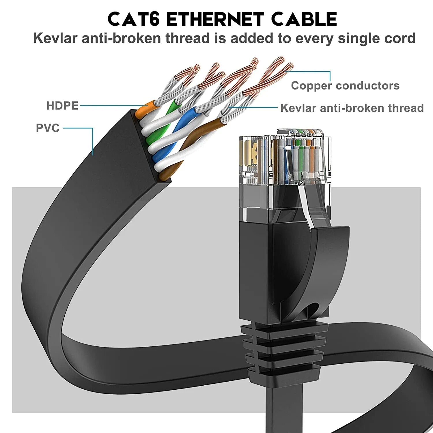 Cat6 Cable are in flat design to make it can run under the carpet rug or carpet and easier to line up against the wall. Ultra-thin technology helps avoid tangled cords and saves space. Combined with CABLE CLIPS, Super flexible when run under the carpet or bent in the plane of its thin cross-section such as doors, drawers, rotating arms etc.