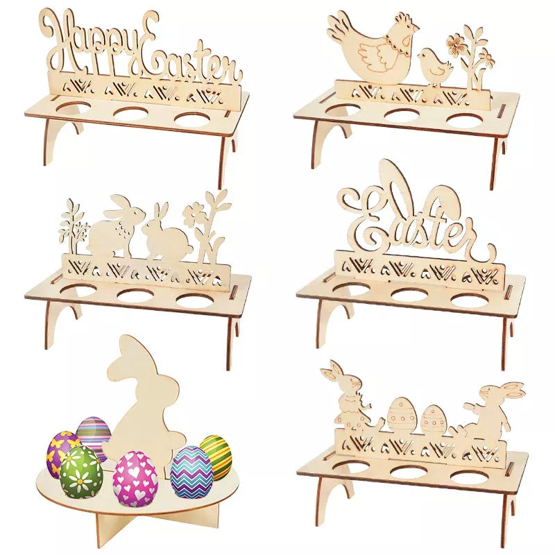 Easter Decoration for Home Wooden Easter Egg Holder Shelves DIY Craft Handmade Ornaments Kids Gift Happy Easter Party Decor 2024