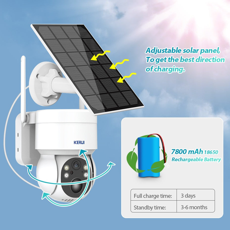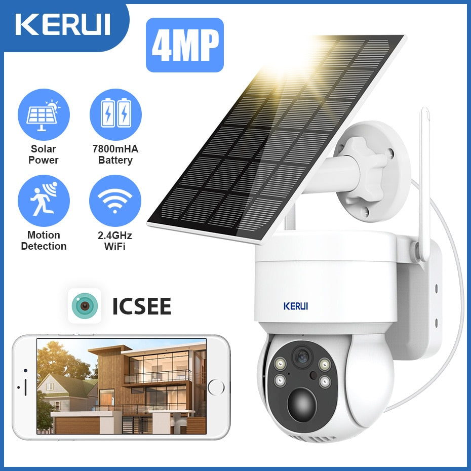 KERUI 4MP Outdoor Waterproof Wifi IP Camera Panel Solar Camera with Rechargeable Battery PTZ Home Security Video Surveillance