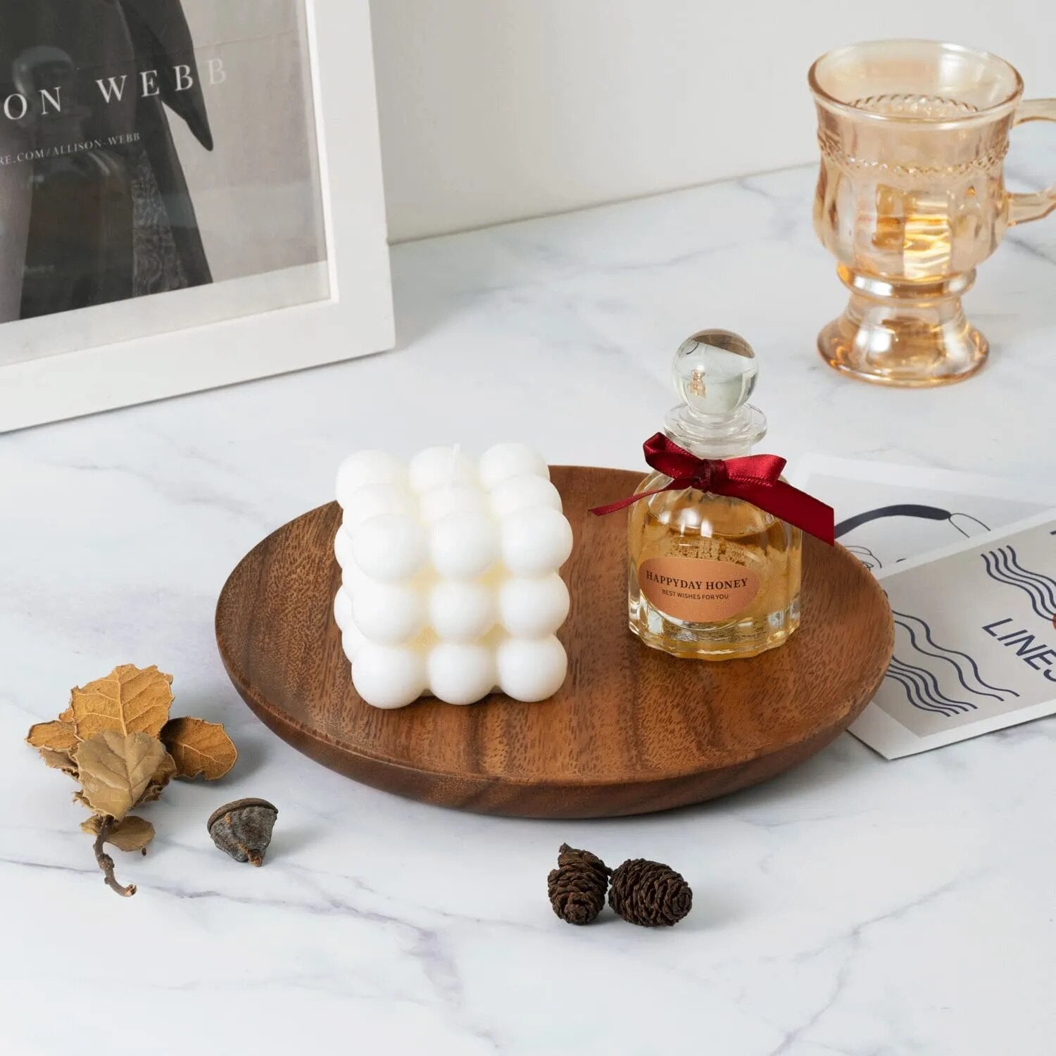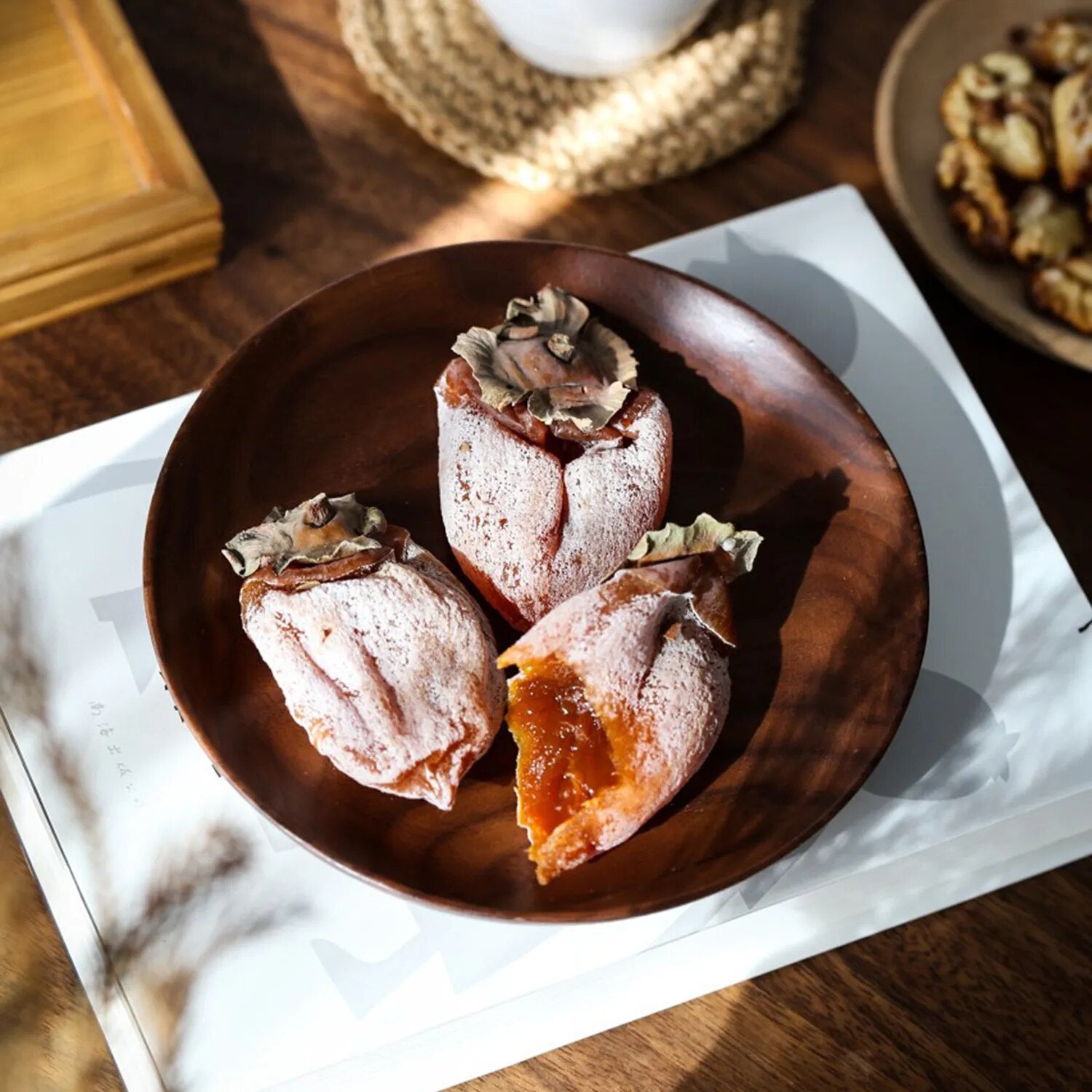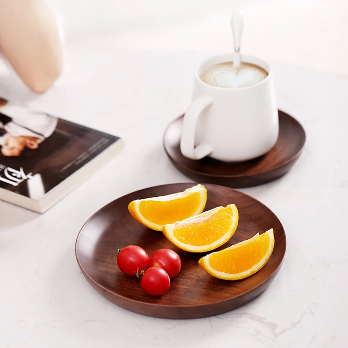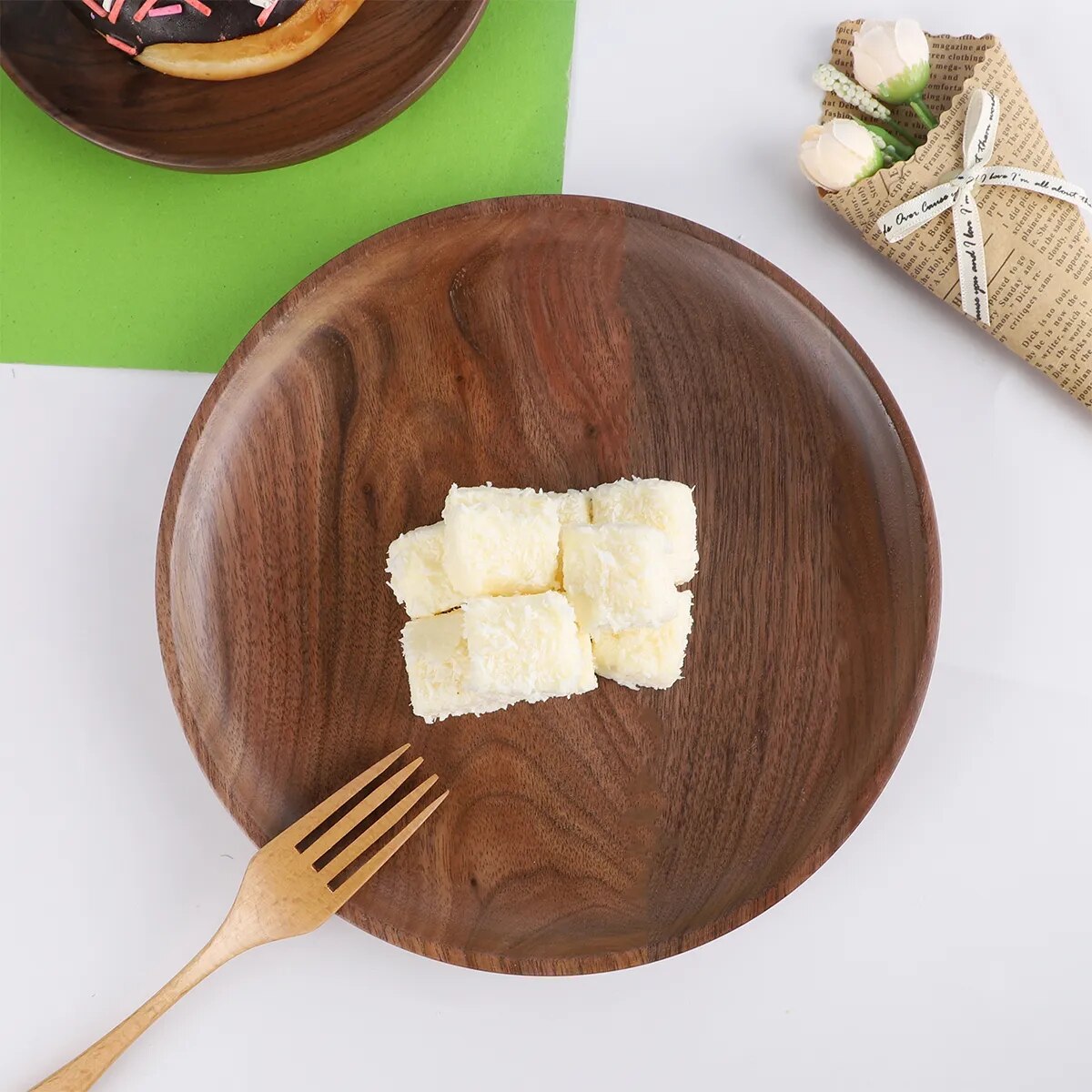 Royalling Round Solid Wood Plates, Stackable Dinner Plates, Natural Tableware Dining for Dishes Snack - Acacia and Walnut Wooden