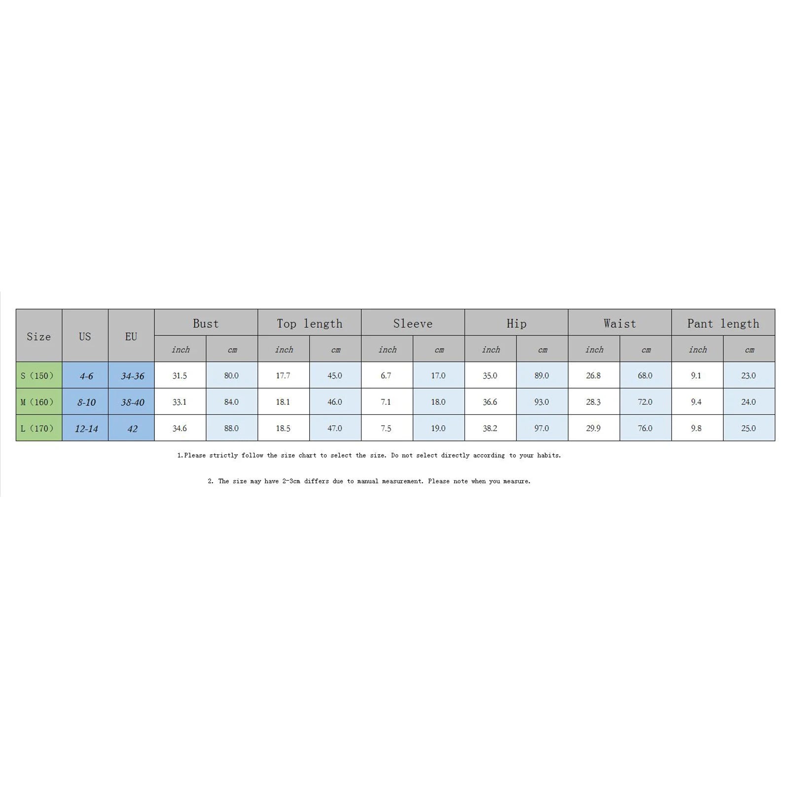 S Tops Length: 17.72 Bust: 31.50 Sleeve: 6.69 Pants Length: 9.06 Waist: 26.77 Hip: 35.04