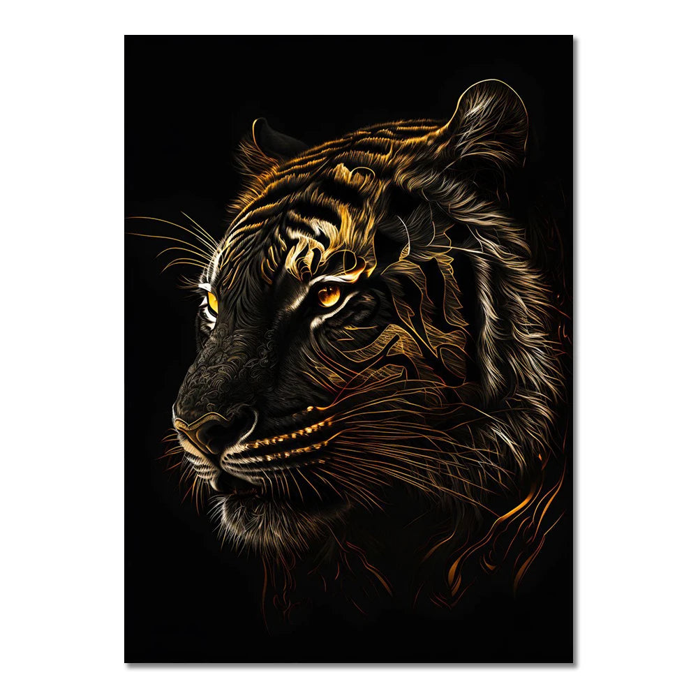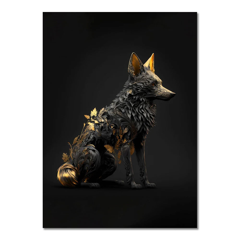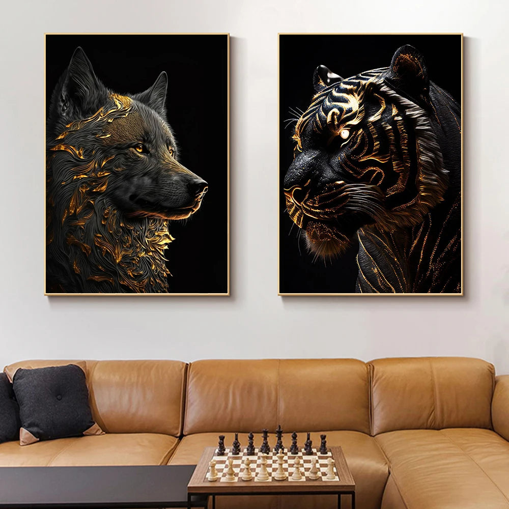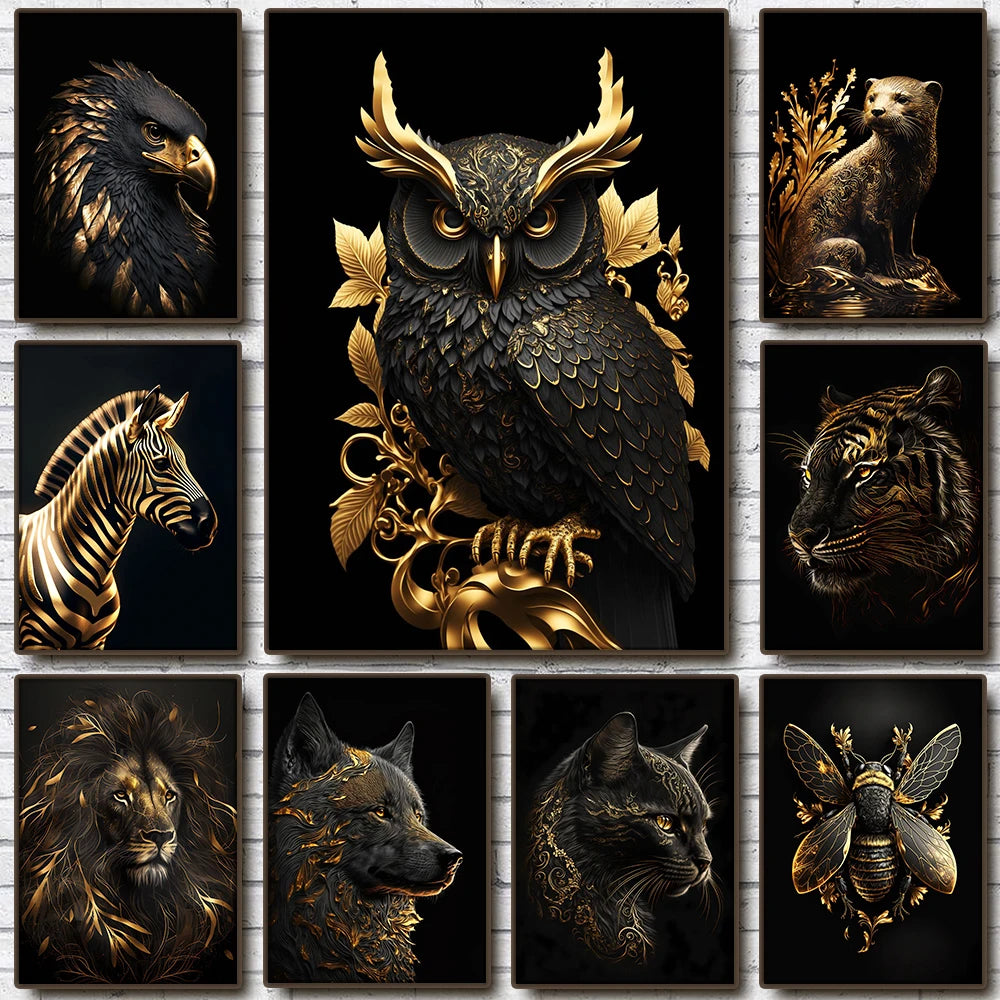 Abstract Black Gold Animal Canvas Painting Owl Tiger Lion Wolf Eagle Zebra Bull Posters Wall Art Pictures for Room Home Decor