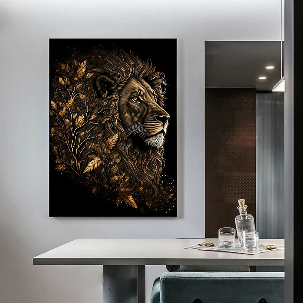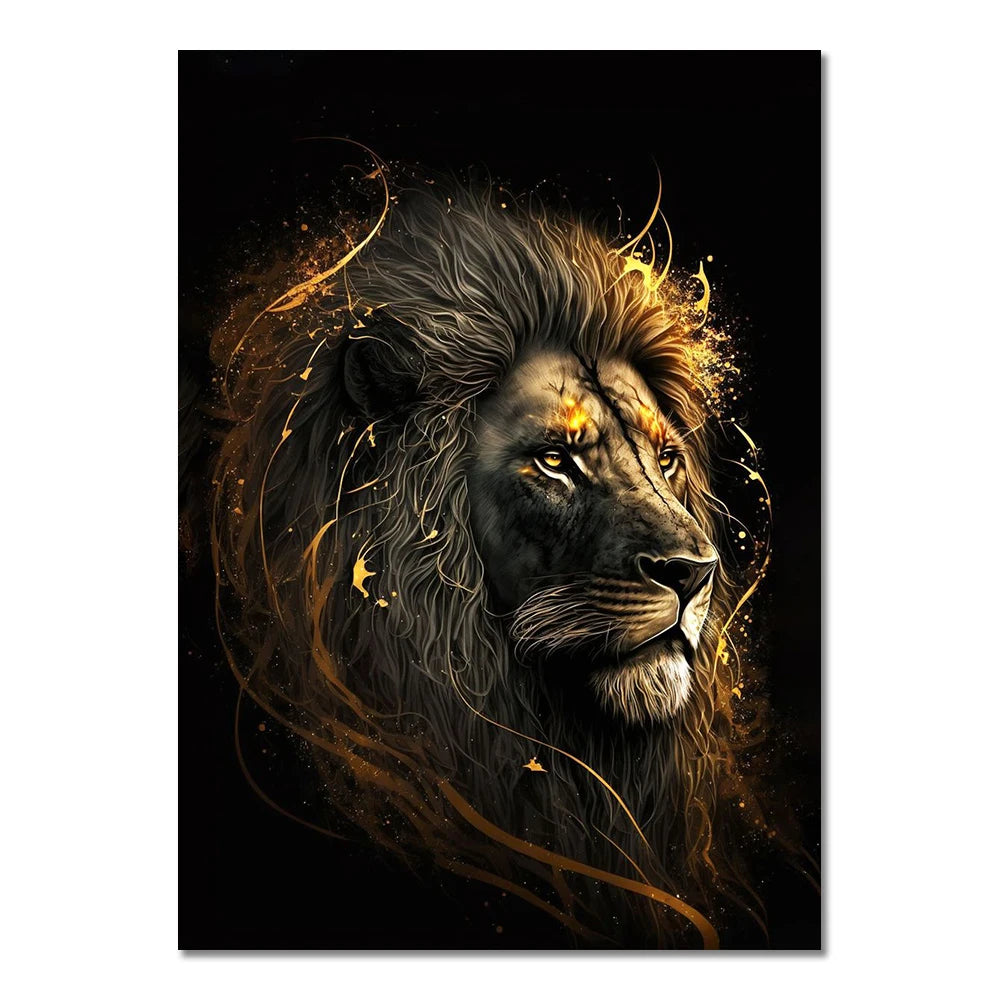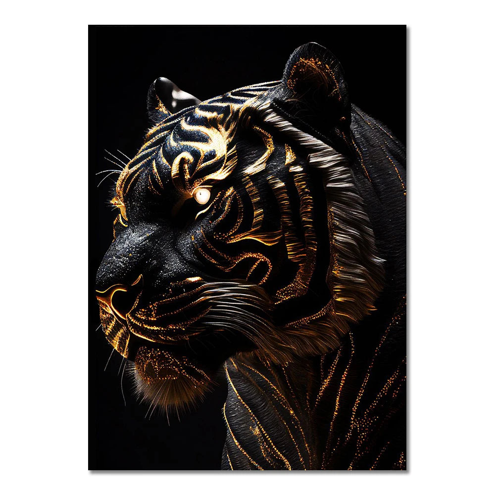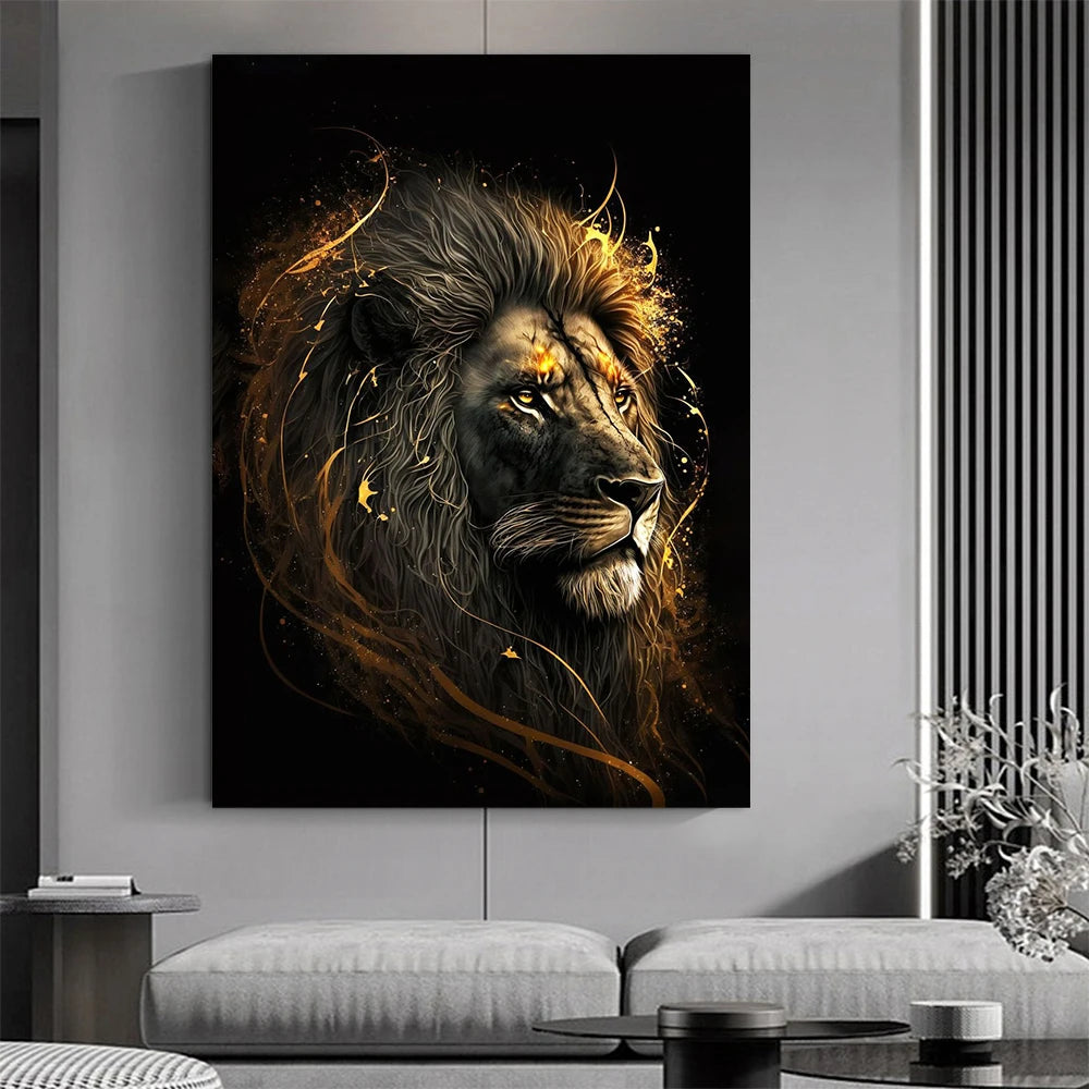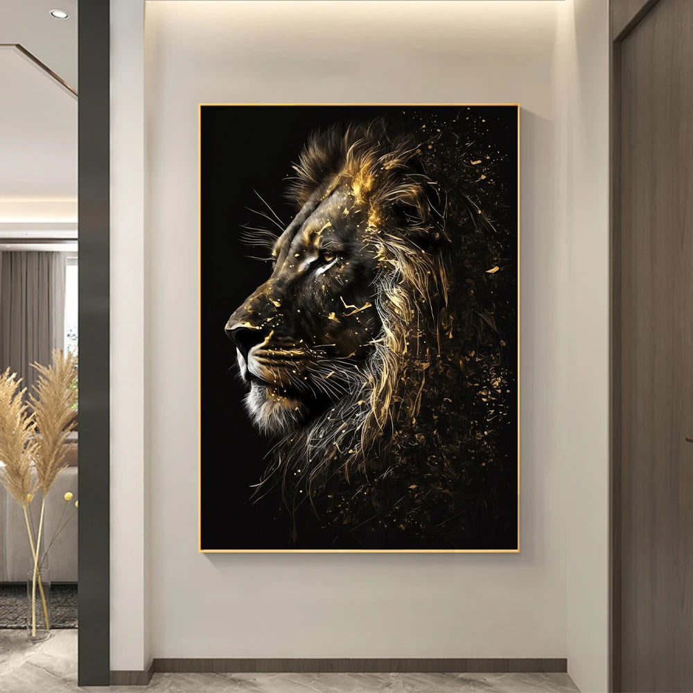 Abstract Black Gold Animal Canvas Painting Owl Tiger Lion Wolf Eagle Zebra Bull Posters Wall Art Pictures for Room Home Decor