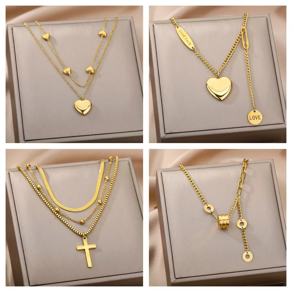 Double Layer Hollow Clavicle Chain Stainless Steel Necklace For Women